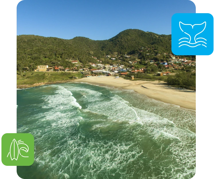 Da energia do surf à calmaria das praias, dos mirantes à pesca artesanal, cada canto revela um novo encanto. Viva aventuras, contemple baleias, pedale por paisagens únicas e descubra a essência do litoral catarinense.